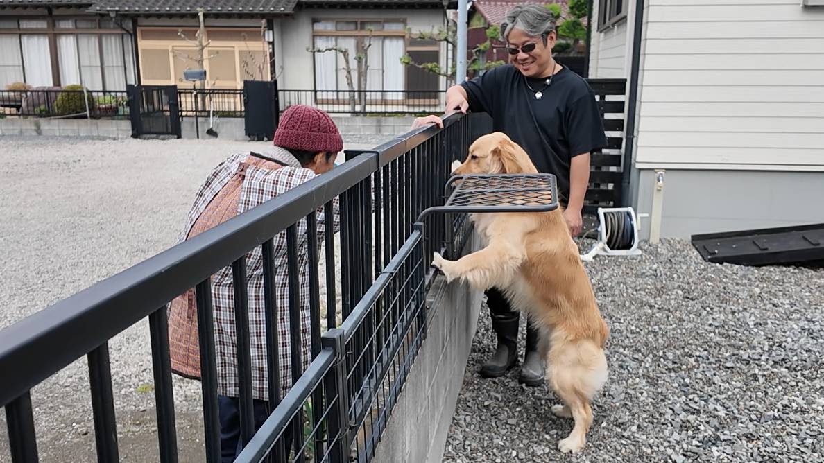 寒くなる前に塀の掃除をするパパ。パパは基本年に2回ほど掃除をしています。ついでに家の色んな場所を掃除して。うみは元気に庭を走り回ります。そんな中大好きな隣の家のおばあちゃんが!おばあちゃんの事が大好きなうみ。我を忘れて大興奮です(笑)