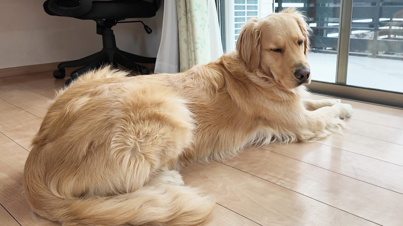 起きたらパパがいなくて寂しくて仕方ないゴールデンレトリバー。